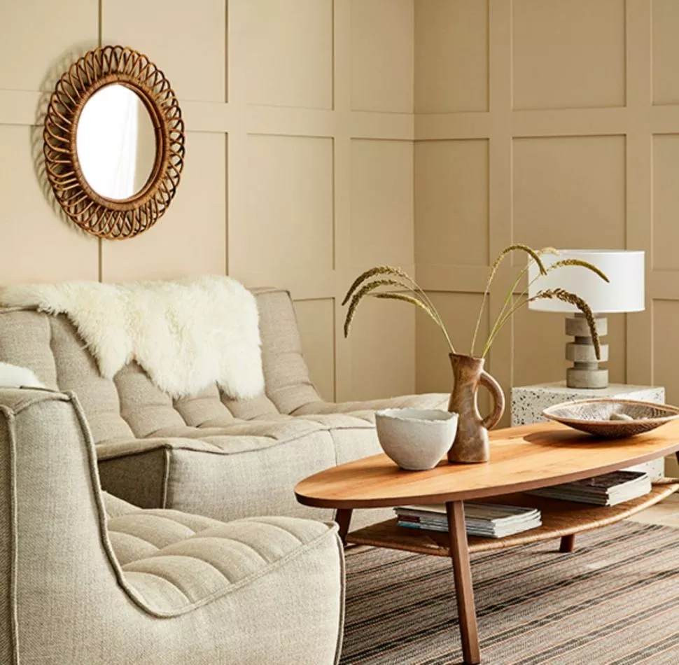 In seiner wechselhaften Geschichte diente Basildon Park 150 Jahre lang als Herrenhaus, als Sanatorium im Ersten Weltkrieg, als Kaserne im Zweiten Weltkrieg und überstand sogar den Versuch, abgebaut und eins zu eins in Amerika wieder aufgebaut zu werden. Glücklicherweise gelangte das Anwesen in den 1950er Jahren in die philanthropischen Hände von Lord und Lady Iliffe, die eine Leidenschaft für Renaissance-Interieurs hegten. Dieser warme Neutralton wurde an den Wänden des Treppenhauses gefunden, das mehr wie ein Aufenthaltsraum wirkt, denn als kühler Flur.