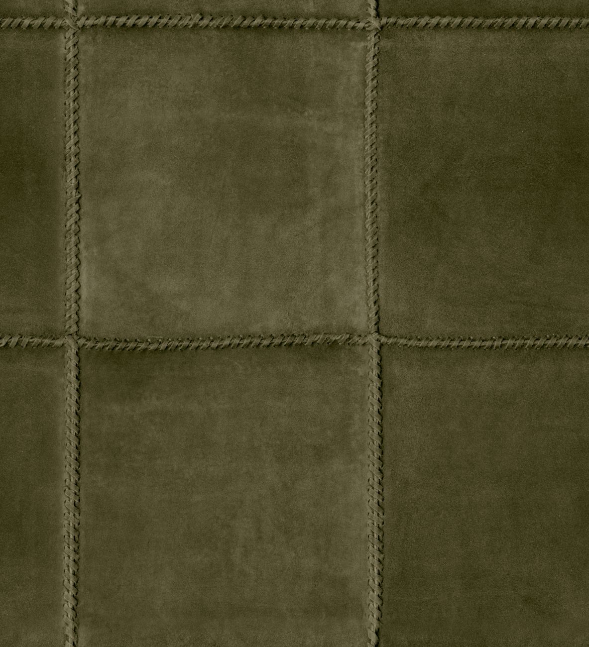 Umschreibung: Ein Uni aus aufgerautem Wildleder gefertigt, in Quadrate geschnitten, von Hand genäht und sorgfältig zusammengesetzt.
