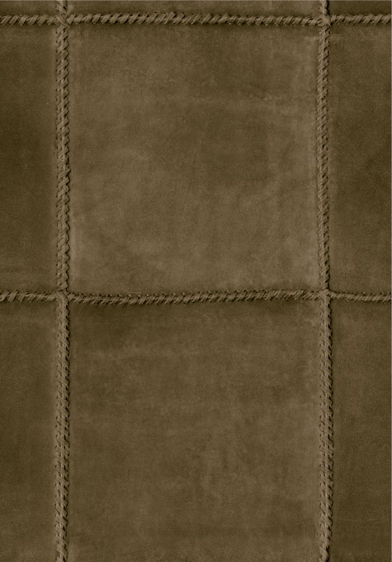 Umschreibung: Ein Uni aus aufgerautem Wildleder gefertigt, in Quadrate geschnitten, von Hand genäht und sorgfältig zusammengesetzt.