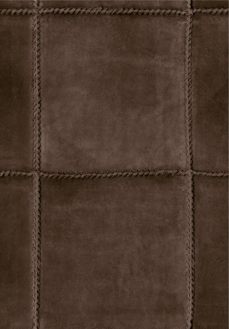 Umschreibung: Ein Uni aus aufgerautem Wildleder gefertigt, in Quadrate geschnitten, von Hand genäht und sorgfältig zusammengesetzt.