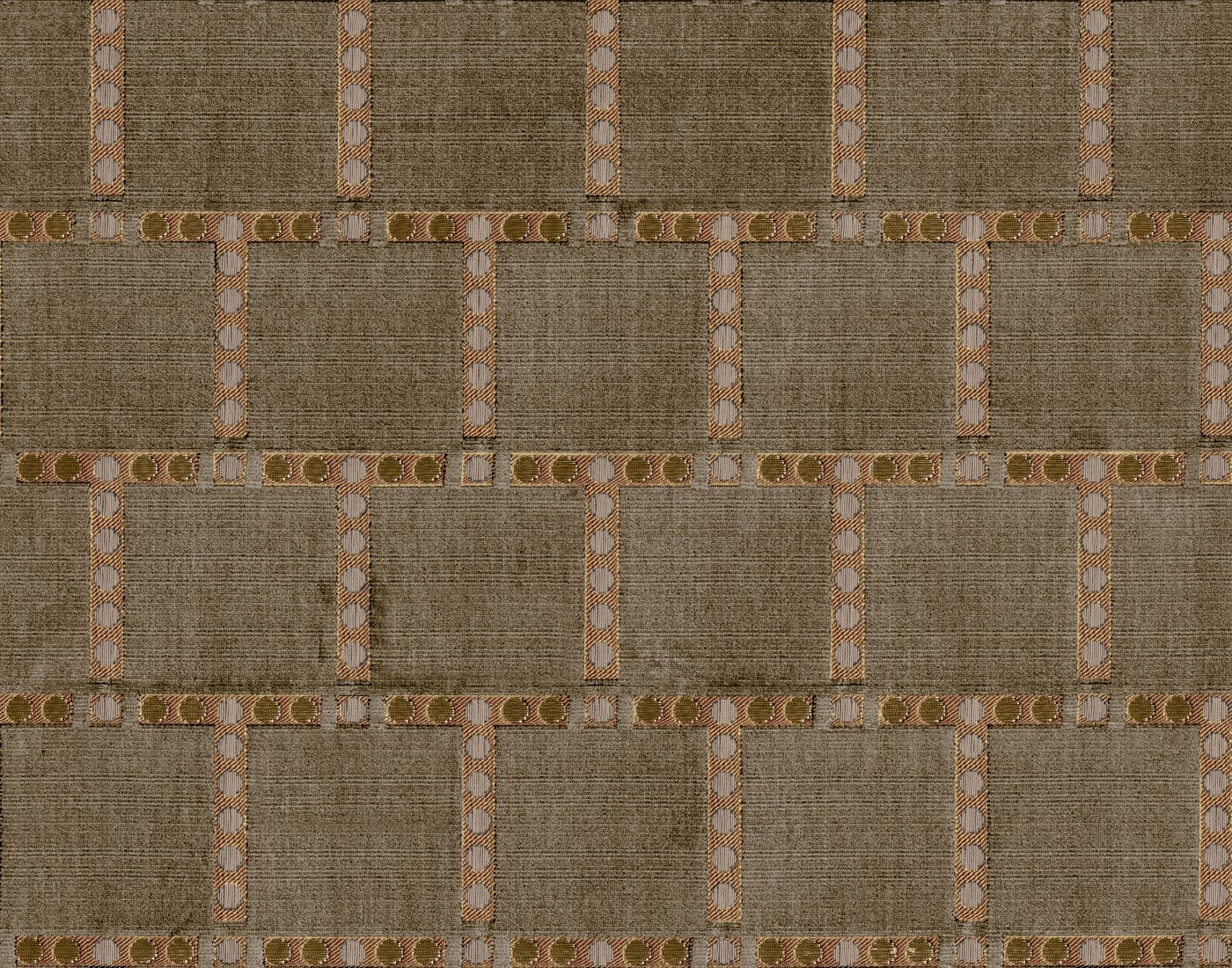 CabochonAuch Cabochon hat seinen Ursprung in der französischen Möbeltradition. Das Design zeigt ein streng angeordnetes Muster aus Samtquadraten, umrahmt von feinen Knöpfen. Diese erinnern an die dekorativen Nägel – ‘cabochons’ – die früher verwendet wurden, um Stoffe elegant zu befestigen.