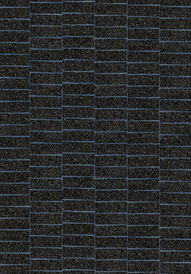 Dieses Design besteht praktisch aus gewebtem Glimmer. Zuerst werden Bögen mit geklebten Glimmerflocken eingefärbt. Sie werden in ganz schmale Streifen geschnitten, die danach mit einem klassischen Webstuhl verwoben werden. Das Resultat ist eine Wandbekleidung, die wie ein sehr feines, leicht glitzerndes Mosaik anmutet.