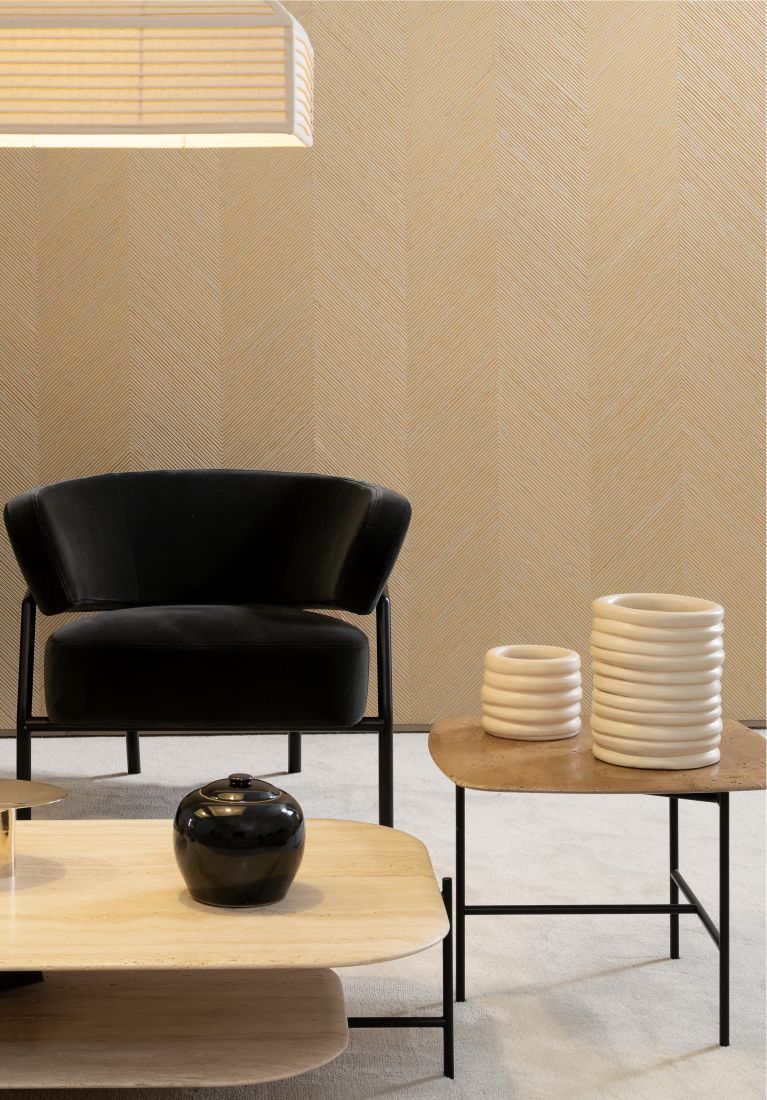 In der griechischen Mythologie ist Zephyros der Gott des Westwinds. Zephyr leitet sich von diesem Namen ab und steht für einen angenehmen, sanften Westwind. Diese Kollektion von Wandbekleidungen ist genau davon inspiriert. Jedes Design fängt auf seine eigene Weise die fließenden und sanften Bewegungen des Windes ein, mit abgerundeten Formen und geschmeidigen Linien – als würde eine sanfte Brise in den Raum wehen.Die Kombination aus besonderen Materialien wie natürlichem Sisal, weichem Wildleder und glänzender Metallfolie verstärkt den Ausdruck der Muster. Im Einklang mit dem Thema ist die gesamte Kollektion in einer warmen, erdigen Farbpalette ausgeführt.