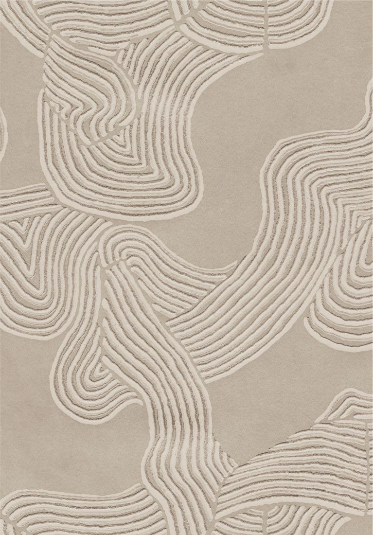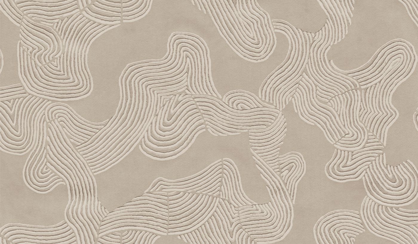 Umschreibung: Ein Muster inspiriert von den geschwungenen Linien im Sand, mit matter Paste und glänzender Folie auf einer weichen Wildlederbasis geschaffen
