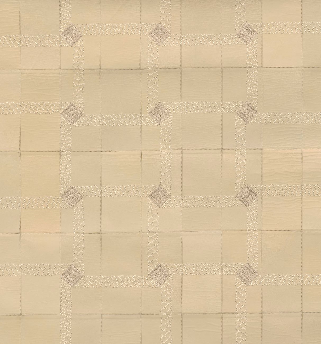 Umschreibung: Eine Stickerei auf satiniertem Leder, inspiriert von den prächtigen Kassettendecken der Renaissance