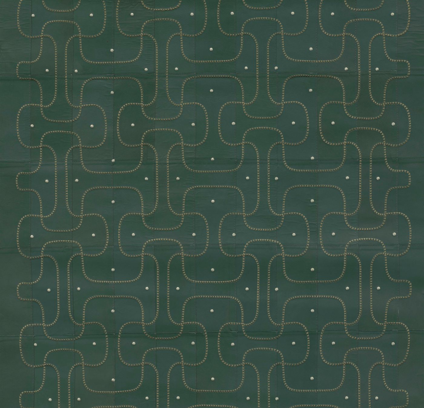 Umschreibung: Ein Muster aus fein gestickten Linien, sorgfältig auf satiniertem Leder aufgebracht