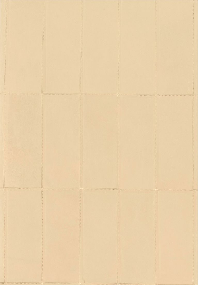 Umschreibung: Ein Uni aus satiniertem Leder zu einem klaren, geradlinigen Muster geschnitten und handvernäht von Hand