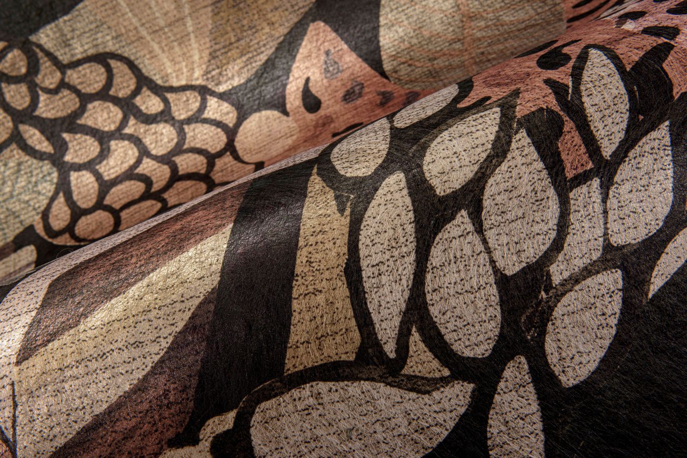 Dieses temperamentvolle Wanddesign versetzt Sie in die Atmosphäre eines feurigen brasilianischen Tanzes. Vielseitigkeit, Rhythmus und Verbundenheit mit der Natur wirken auf die Sinne und das sanfte Schimmern betont die empfundene Rhythmik. Das tropische Dekor weist eine sichtbare Papierstruktur auf, die ihm einen Hauch von Vintage verleiht.