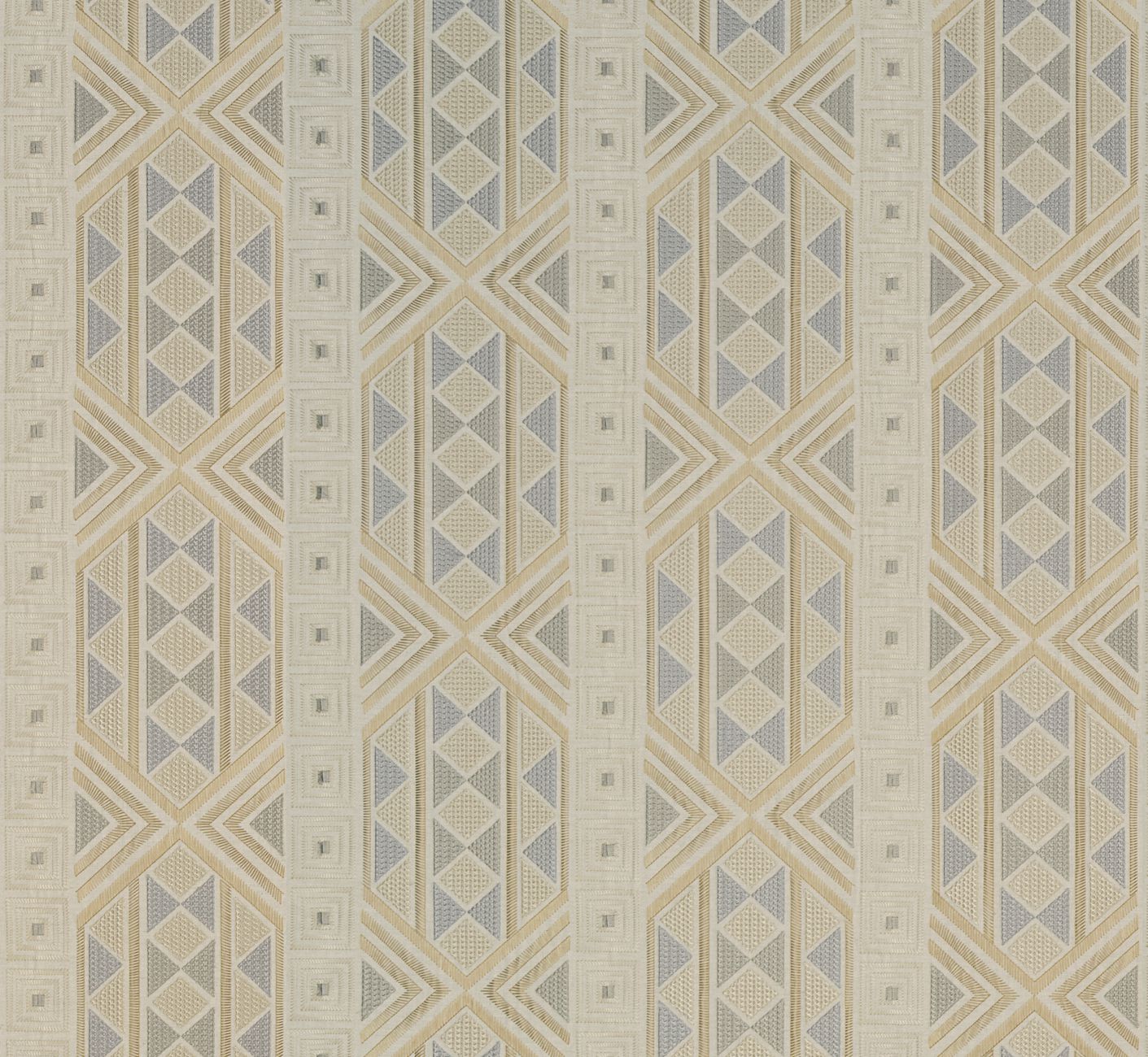 Dieses Dessin ist ein beeindruckendes Stickereimotiv im echten Art-Déco-Stil. Der Name bezieht sich auf die Filigrantechnik, eine traditionelle Goldschmiedekunst, bei der äußerst feine Drahtmuster gefertigt werden. Der Stoff, auf den dieses Design gestickt wird, ist eine warme Mischung aus Baumwolle und Leinen.