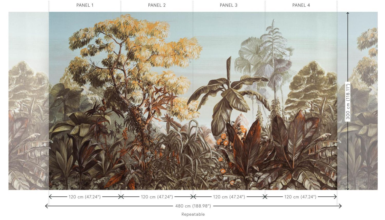 Abmessungen: Panorama 480 cm x 300 cm = 14,4 m², bestehend aus 4 Bahnen à 120cm