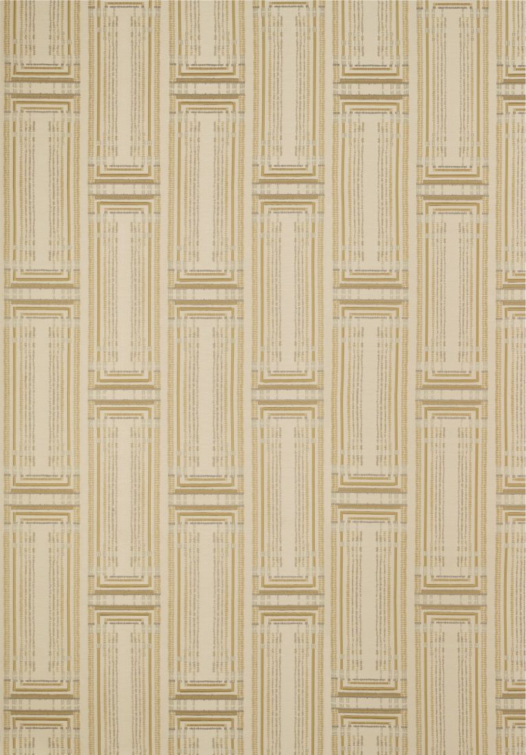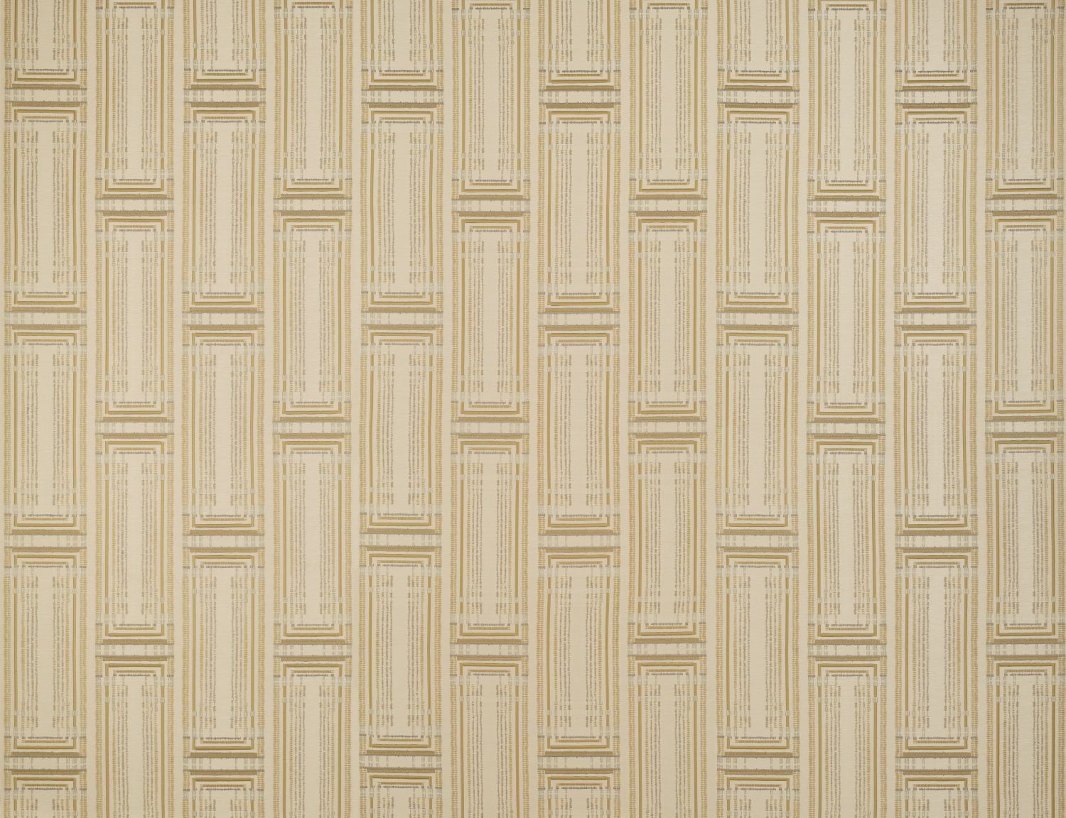Dieses besondere Art-Déco-Dekor vereint verschiedene Webtechniken. Das Muster wird teilweise auf den Jacquard-Stoff gestickt, andere Linien entstehen durch Velvet-Applikationen.