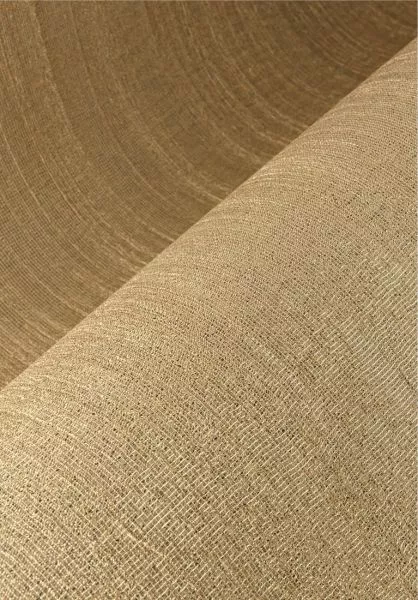 Diese raffinierte Wandbekleidung zeichnet sich durch eine einzigartige Gaze-Webart aus: eine spezielle, offene Struktur, die matte und Lurexfäden miteinander kombiniert und so einen subtilen Glanzeffekt schafft. Das offen gewebte Textil ist sowohl horizontal als auch vertikal plissiert und auf einen farbigen Hintergrund aufgebracht, was zusätzliche Tiefe und einen edlen Look erzeugt.