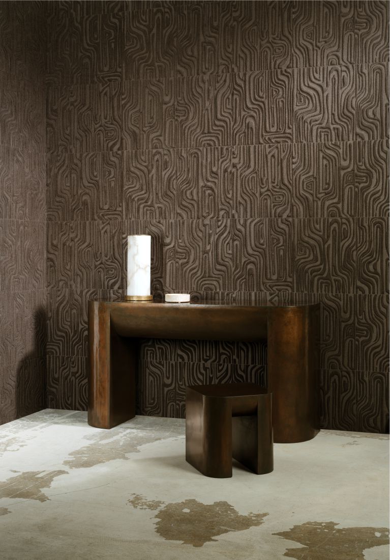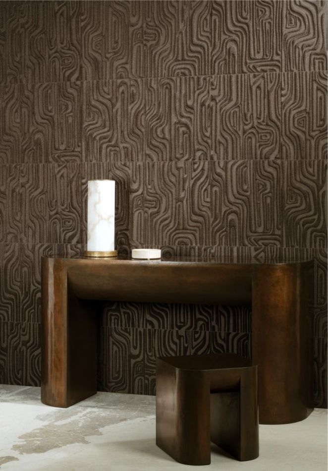 Umschreibung: Traumhafte Textil-Wandbekleidung mit 3D-Effekt und faszinierenden Formen und Mustern