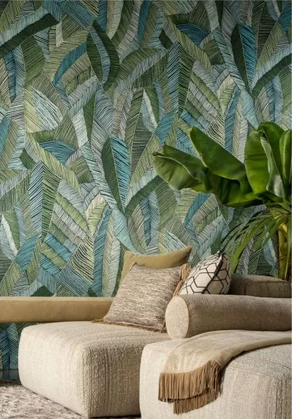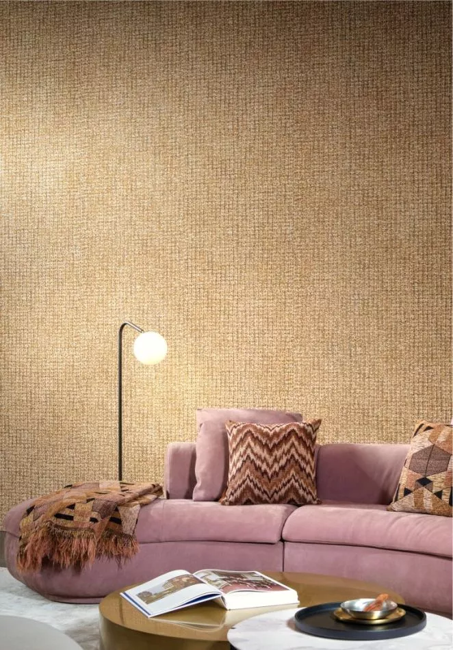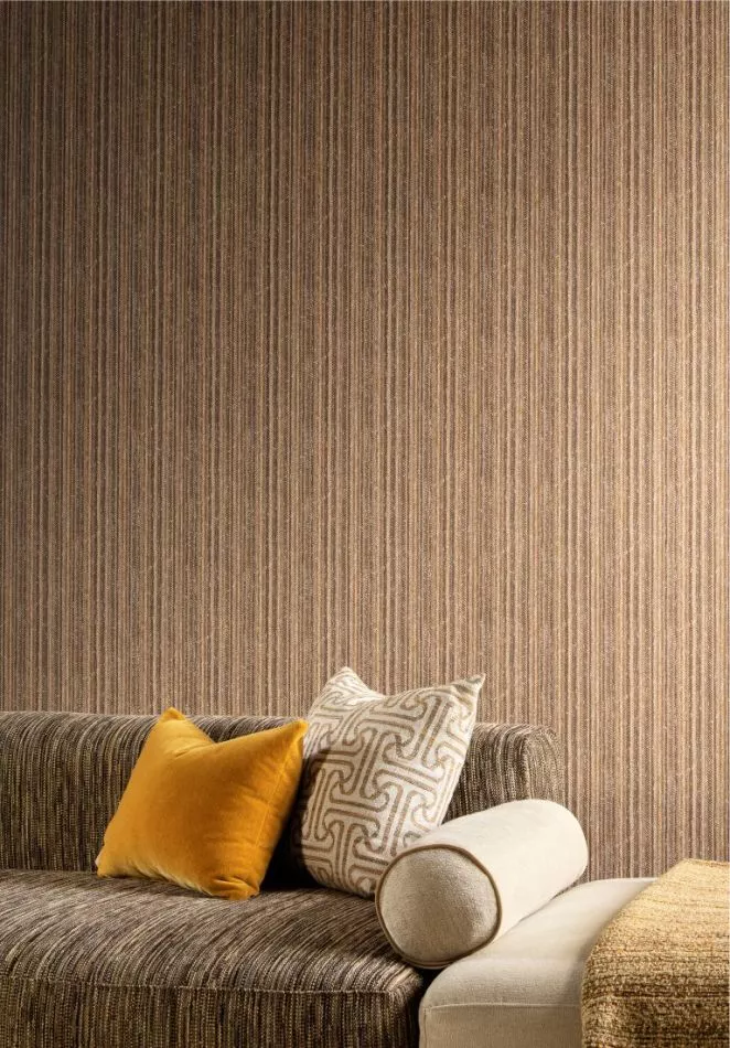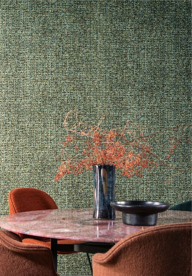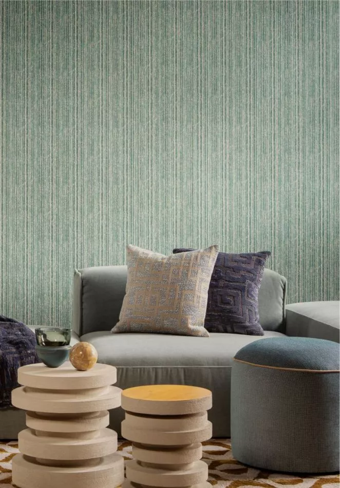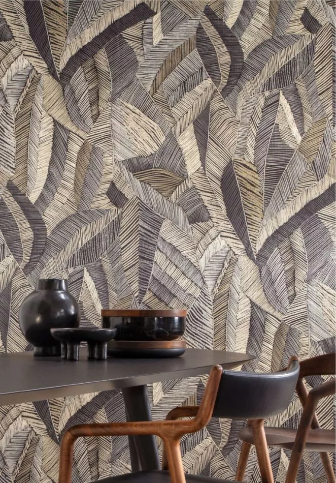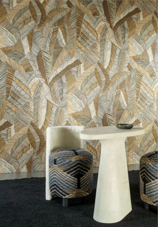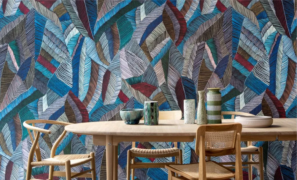 Die Mehrheit der Muster ist eher zurückhaltend und sehr vielseitig anwendbar, um der Wand neben der Farbe auch Struktur zu verleihen. Die Zeichnung mit einem Look von Chintz ist sehr apart und sticht durch ihren Glanz und ihre verspielten Kreidelinien in einer explosiven Farbpalette hervor.