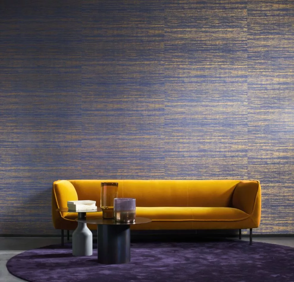 Eri macht jede Wand zu einem einzigartigen Objekt. Purer Luxus. Inspiriert von einer offen gewebten Seide, die auf einer Basis aus edler Hochglanzfolie aufgebracht ist. Der warme Glanz des Edelmetalls leuchtet durch die feinen Maschen des Stoffes und sorgt für eine starke und exklusive Optik.