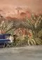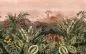 Umschreibung: Eine lebensechte Dschungellandschaft, gedruckt auf echtem Textil mit natürlicher Optik und einem subtilen, goldenen Hintergrund