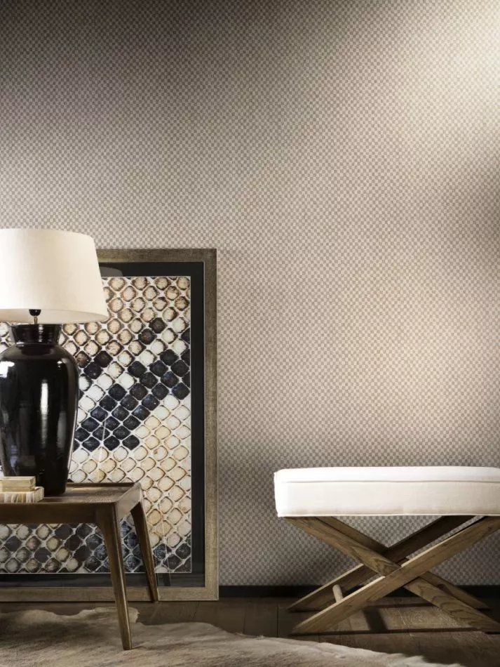 Damier eine glatte Ausstrahlung, während man aus der Nähe wiederum von den vielen Quadraten in kontrastierenden Farbtönen überwältigt wird. Durch die Leinenstruktur wirkt das Muster sehr zart und subtil. Die Übergänge sind nicht ganz perfekt, so dass das Design nicht zu streng wirkt.