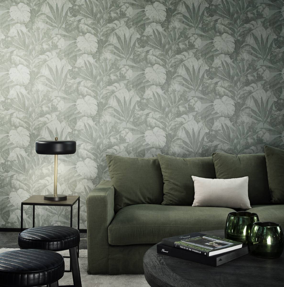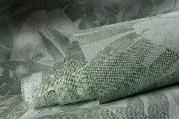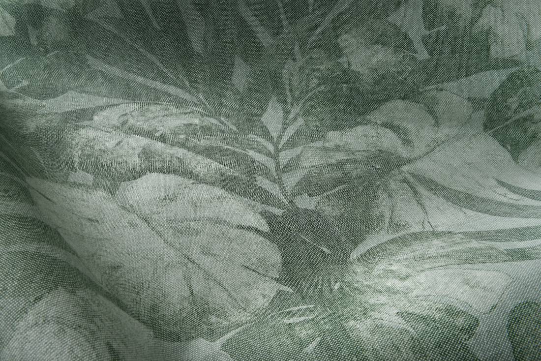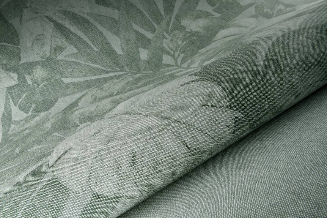Expédition zuhause Ihren eigenen Urwald. Die Leinenstruktur sorgt auch hier für einen besonderen Effekt. Das Design wirkt etwas verblichen, wodurch es noch wertvoller wird. Lassen Sie sich von den Tropen umgeben!