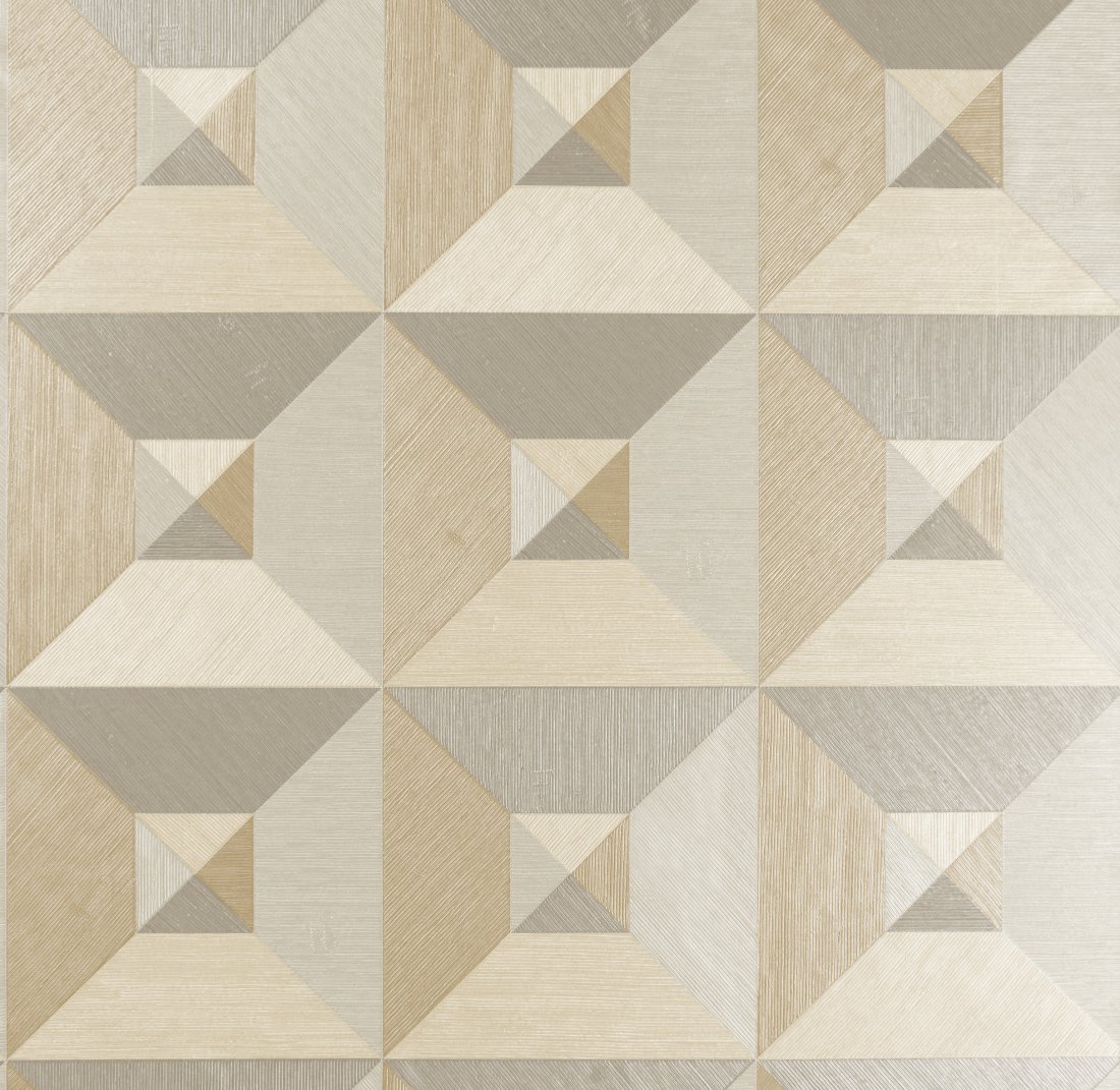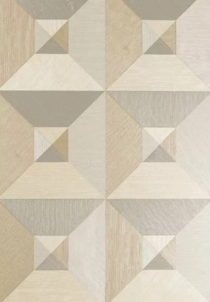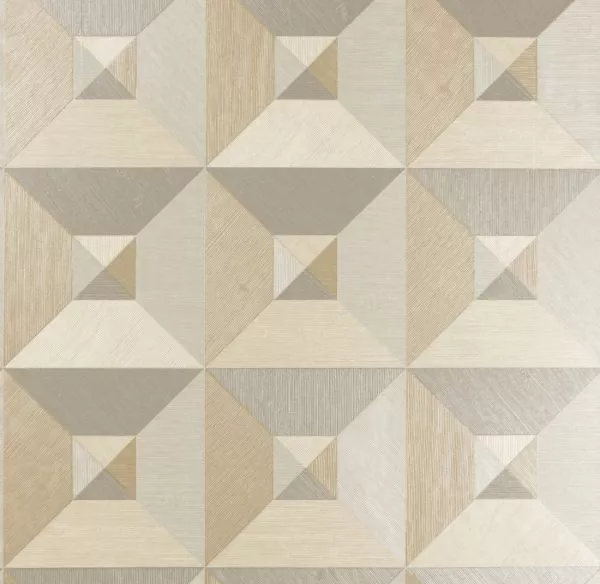 Vinyl-Tapete mit einem tiefen und natürlichen Relief in geradlinigen Formen die einen 3D Effekt kreieren.