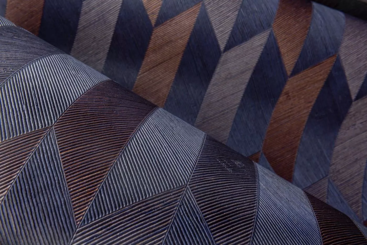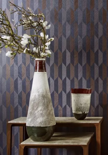 Vinyl-Tapete mit einem tiefen und natürlichen Relief in geradlinigen Formen die einen 3D Effekt kreieren.