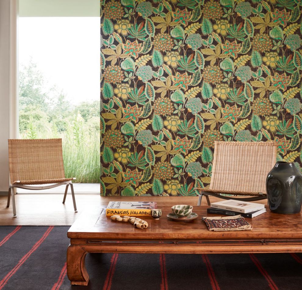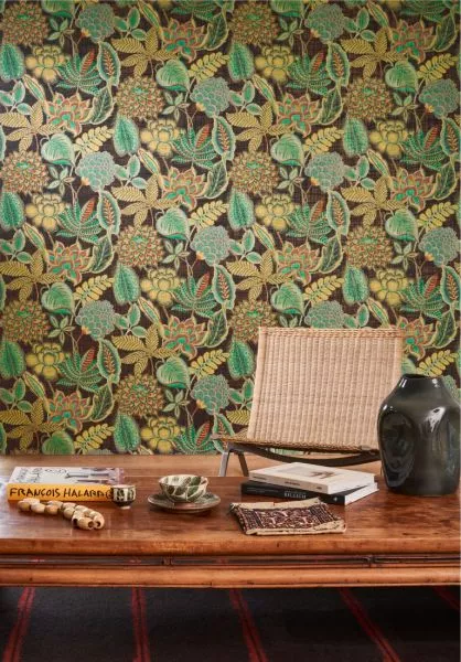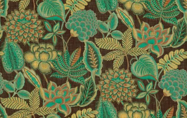 Dieses raffinierte Muster zeigt einen detaillierten floralen Print. Es ist inspiriert von Vintage-Stoffen, die eine üppige Ausstrahlung verleihen und kommt durch den Leineneffekt und den subtilen Metallakzent besonders gut zur Geltung.