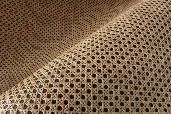 Umschreibung: Handgewebtes Rattan, bei dem die Schattierung der Naturfasern deutlich sichtbar ist
