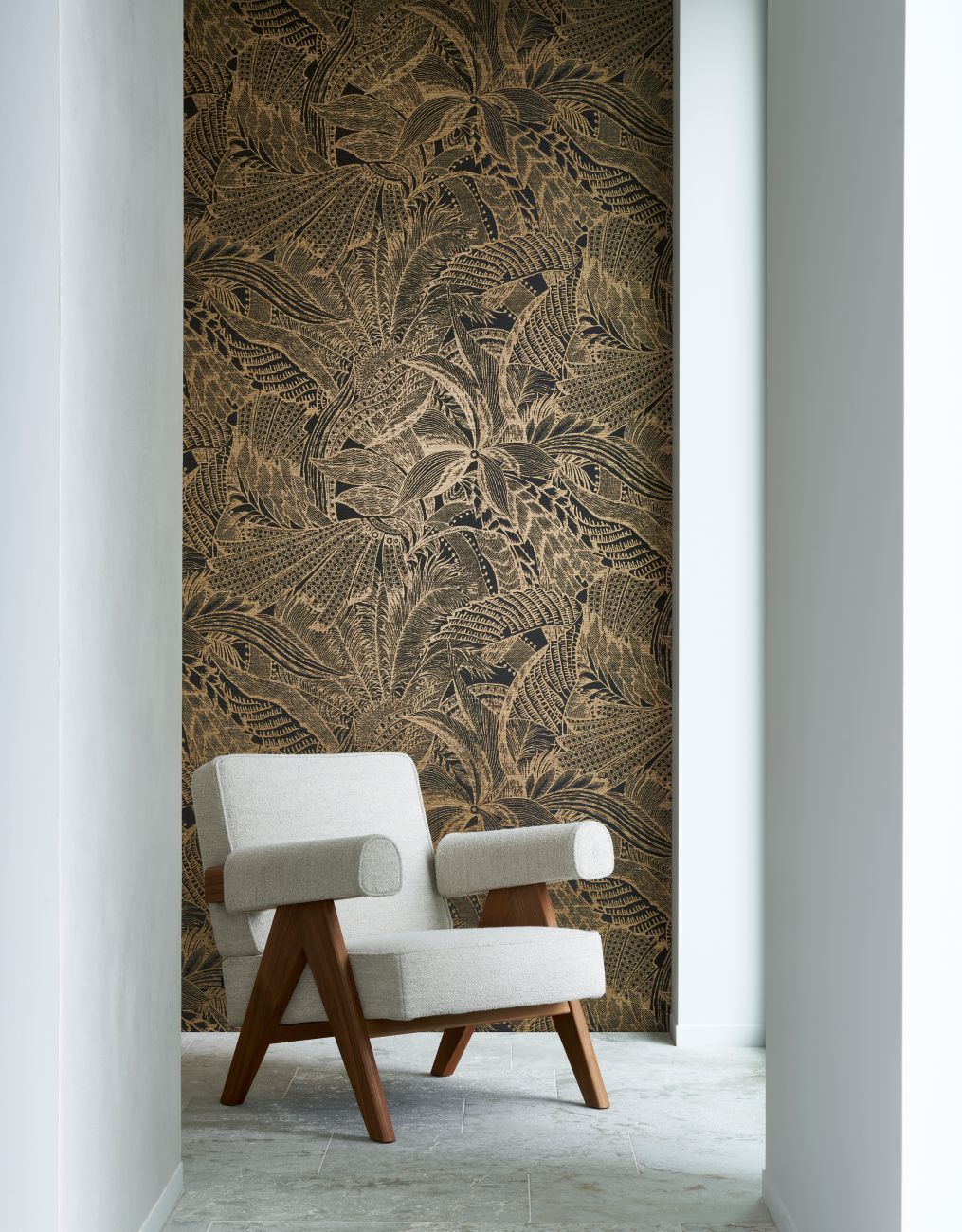 Eine 3D-Wandbekleidung, in weicher Wildleder-Optik die sich die einzigartige Struktur der fast antiken Haut und der typischen graubraunen Falten zum Beispiel nahm, und einer Rüstung glichen.