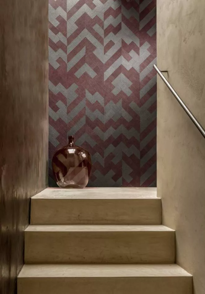 Wandbekleidung von handwerklich gewobener und gefärbter Jute
