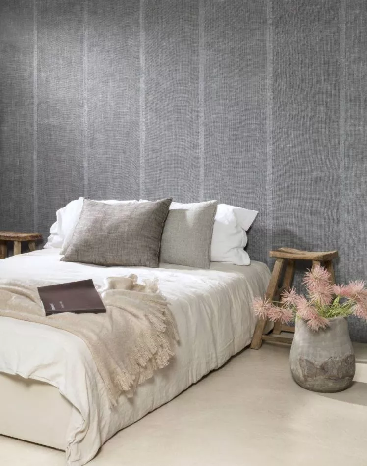 Wandbekleidung von handwerklich gewobener und gefärbter Jute