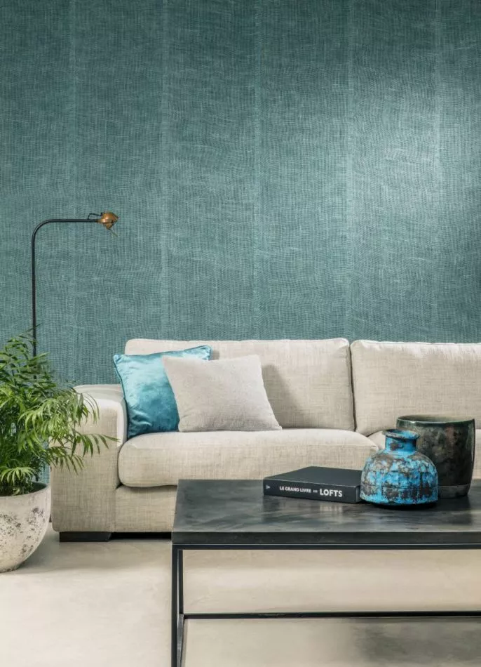 Wandbekleidung von handwerklich gewobener und gefärbter Jute