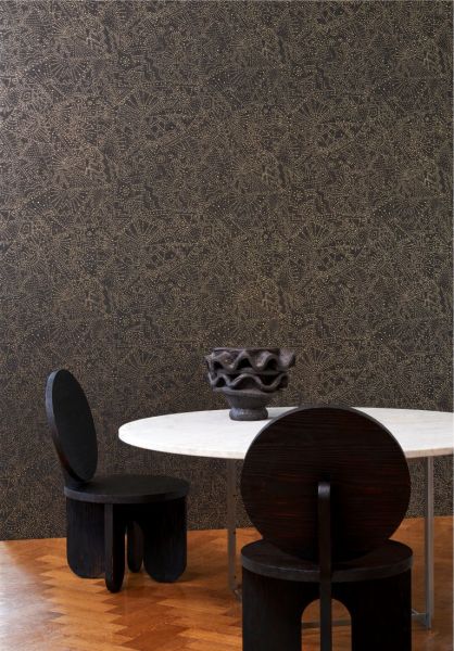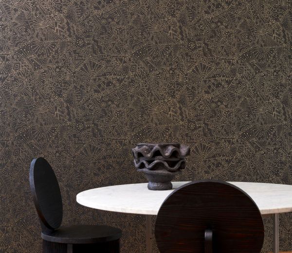 Sobald die Nacht hereinbricht, erscheinen Millionen von Sternen am klaren Himmel der Wüste Gobi, einer der kältesten Wüsten der Welt. Die Anspielung auf einen funkelnden Sternenhimmel ist unübersehbar. Der Kontrast der glänzenden Punkte mit den satten oder zarten Farben transportiert dieses Muster in sphärische Höhen.