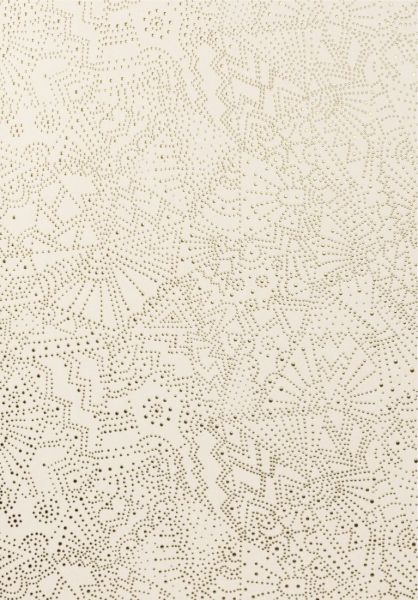 Sobald die Nacht hereinbricht, erscheinen Millionen von Sternen am klaren Himmel der Wüste Gobi, einer der kältesten Wüsten der Welt. Die Anspielung auf einen funkelnden Sternenhimmel ist unübersehbar. Der Kontrast der glänzenden Punkte mit den satten oder zarten Farben transportiert dieses Muster in sphärische Höhen.