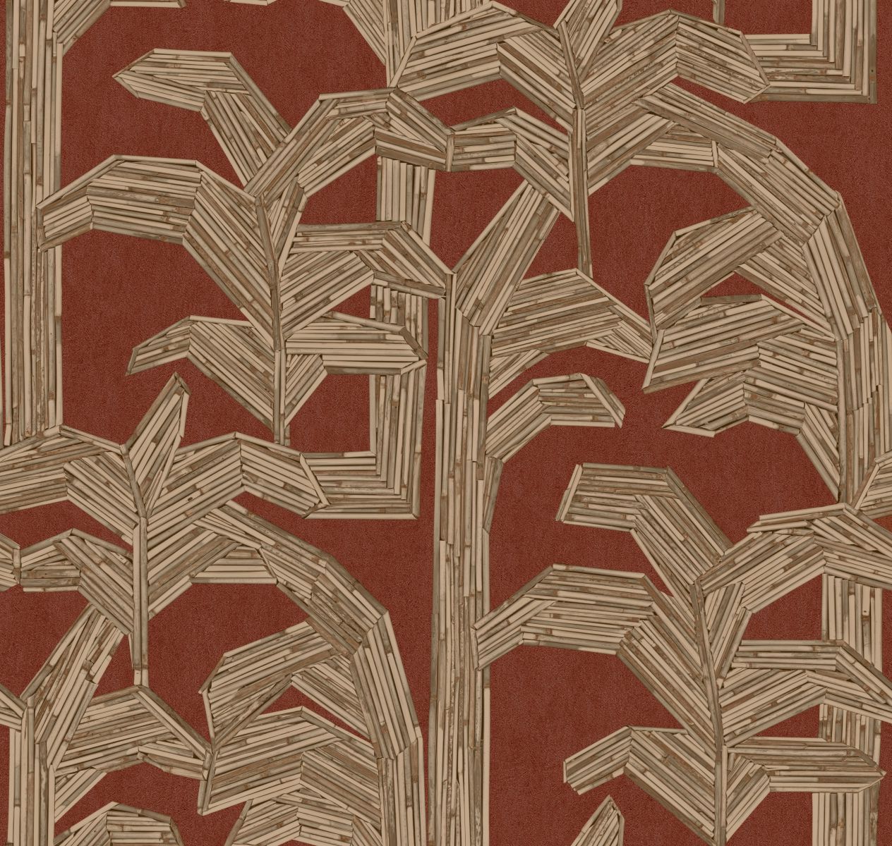 wogenden Palmen mit Rattanstücken auf einem Untergrund aus Bark Cloth, einem faserigenTuch aus der Rinde von Feigenbäumen, eingelegt. Das Ergebnis ist eine besonders realistische