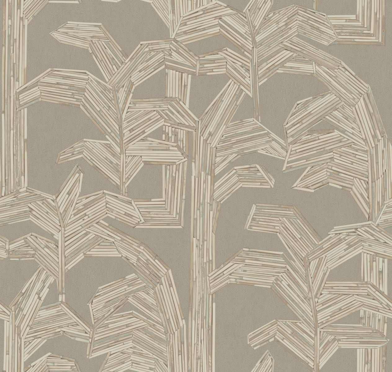 wogenden Palmen mit Rattanstücken auf einem Untergrund aus Bark Cloth, einem faserigenTuch aus der Rinde von Feigenbäumen, eingelegt. Das Ergebnis ist eine besonders realistische