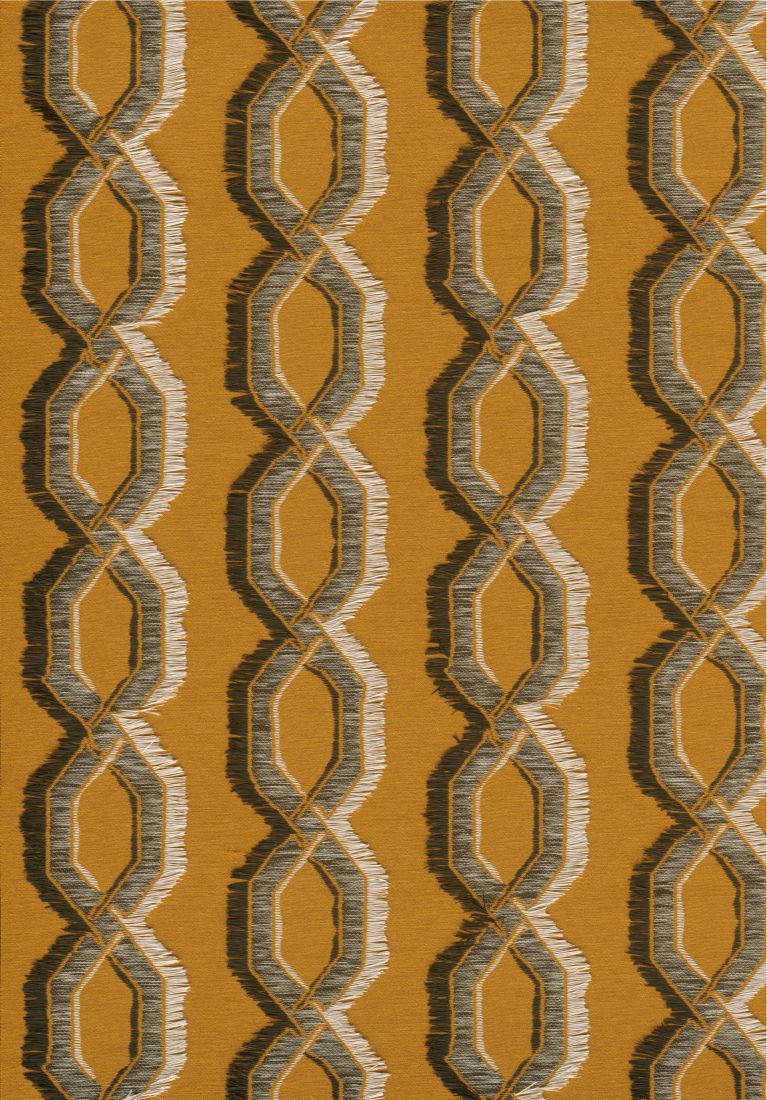 Ein überraschendes Design, angefertigt in Jacquardtechnik, wobei das verspielte Zickzack-Muster im Gewebe des Stoffs verarbeitet ist. Die losen Fäden erzeugen ganz bestimmt einen spektakulären Effekt an der Wand.