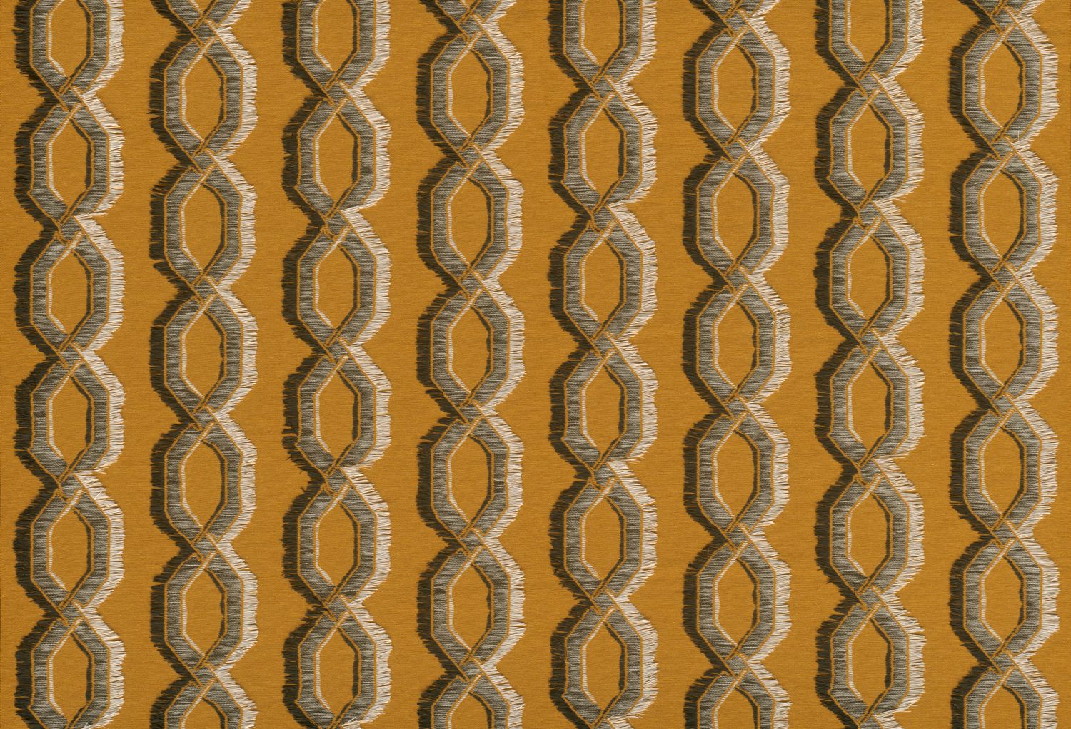 Umschreibung: Ein überraschendes Dessin, angefertigt in Jacquardtechnik, wobei das verspielte Zickzack-Muster im Gewebe des Stoffs verarbeitet ist