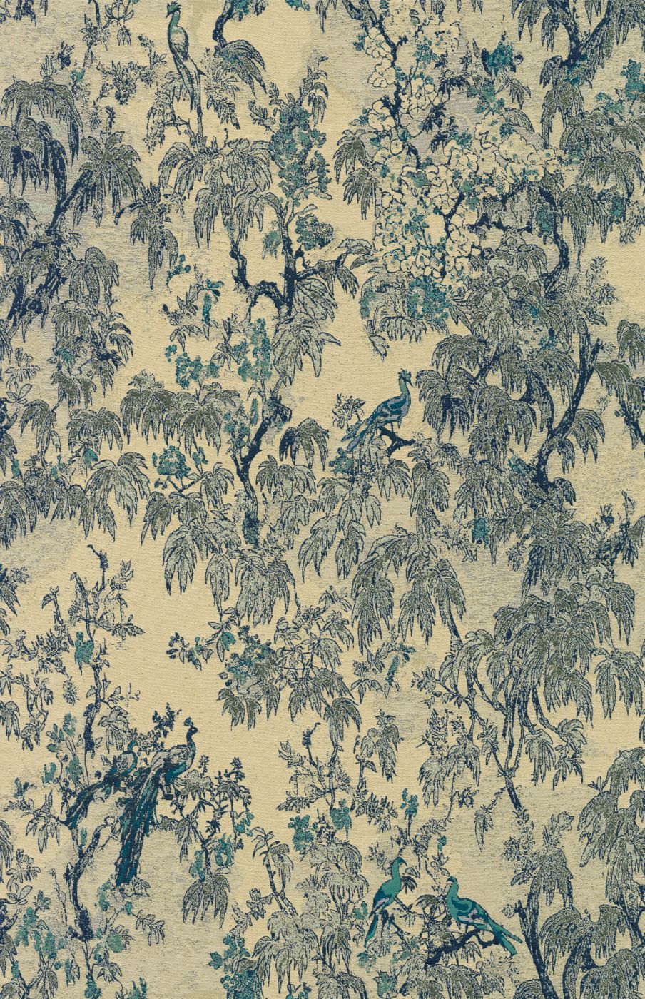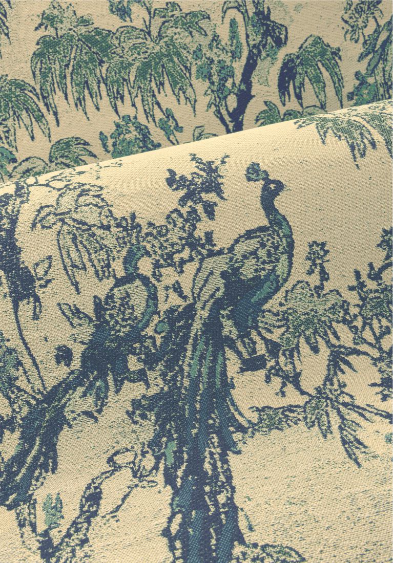 In der Welt der Textilien bezeichnet man als Ramage ein Muster aus Zweigen und Blumen – ein passender Name für dieses Dekor im japanischen Zeichenstil, in dem Paradiesvögel zwischen üppigem Blattwerk verborgen sind. Das luxuriöse Jacquardtextil verleiht dem Design eine klassische Eleganz.
