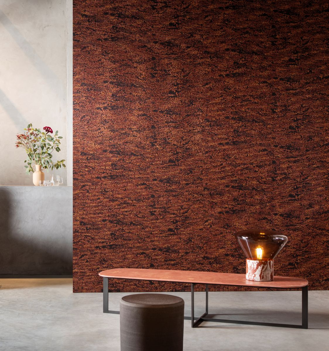 Diese Textiltapete bietet dank des luxuriösen Bouclé-Gewebes eine verwittert anmutende und dabei kuschelig warme Optik. Die horizontal verwobenen mehrfarbigen Fäden verleihen dem Muster Tiefe und schaffen eine reliefartige Oberfläche. Die sichtbaren Metallfäden sorgen für ein dezentes Schimmern.