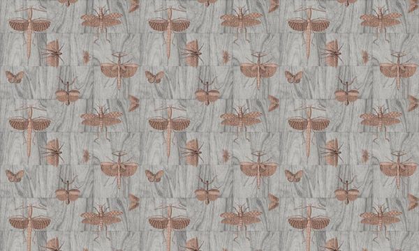 Wings erschaffen Sie eine fröhliche Atmosphäre im Raum. Dieses Dessin enthält allerlei geflügelte Insekten, die Ihre Wand schmücken. Die Insekten erhalten mit dem Metallic-Effekt eine völlig neue stilvolle Ausstrahlung! Das Holz im Hintergrund gibt dem Ganzen einen lebensechten Rahmen.