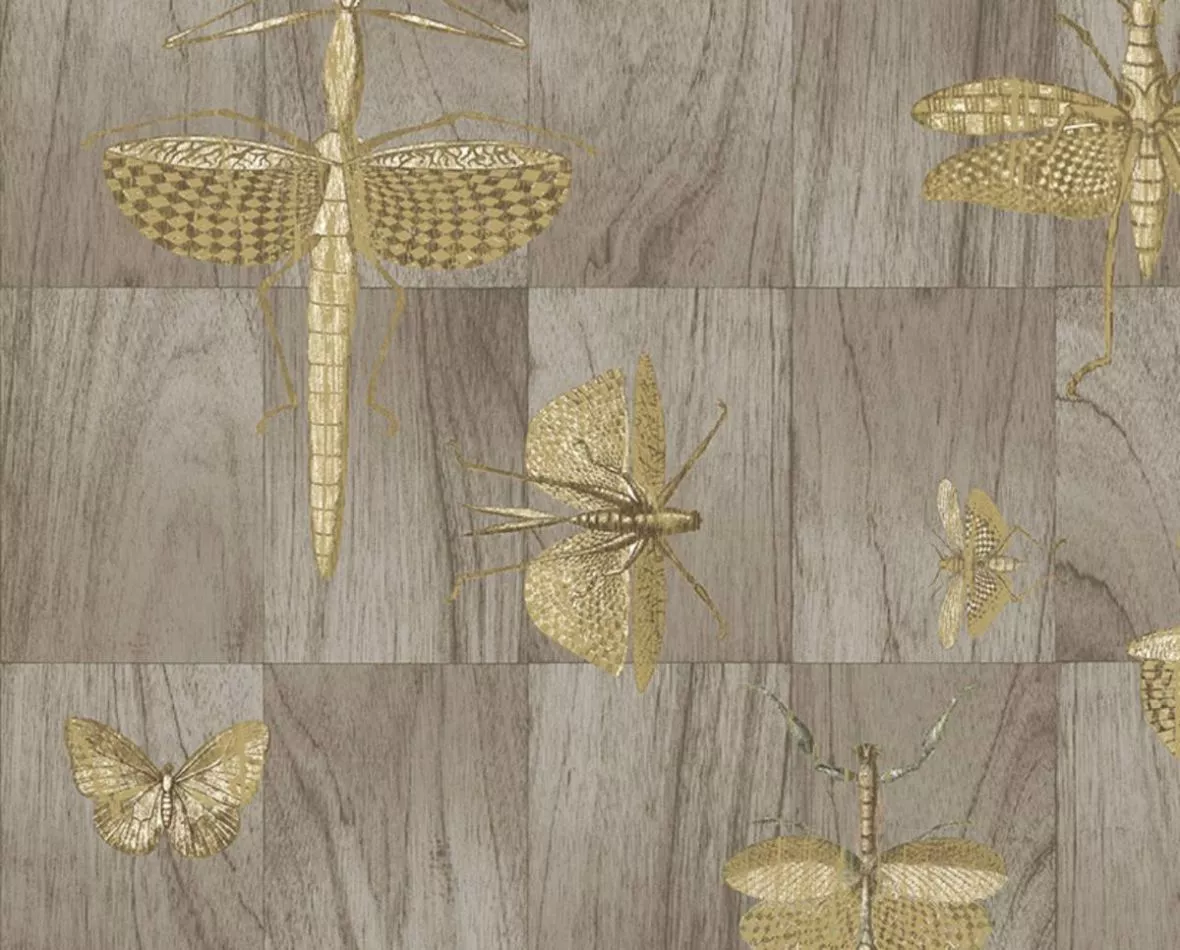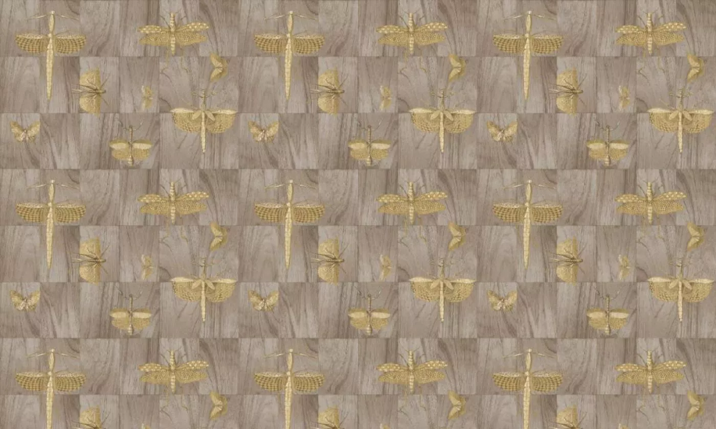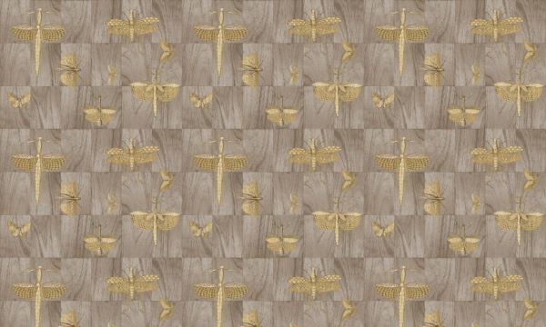 Wings erschaffen Sie eine fröhliche Atmosphäre im Raum. Dieses Dessin enthält allerlei geflügelte Insekten, die Ihre Wand schmücken. Die Insekten erhalten mit dem Metallic-Effekt eine völlig neue stilvolle Ausstrahlung! Das Holz im Hintergrund gibt dem Ganzen einen lebensechten Rahmen.
