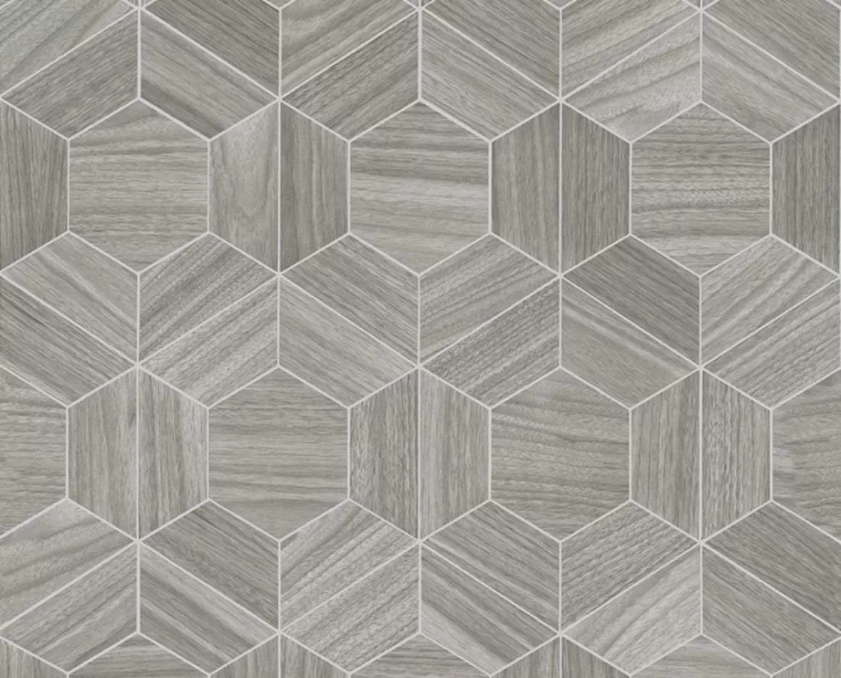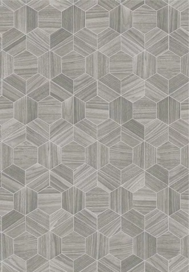 Hive besteht aus Intarsien mit Holzstruktur auf einen Untergrund aus glänzender Folie. Die Folie tritt in feinen Linien zwischen den Intarsien hervor, so dass eine hexagonale Form entsteht. In einigen Farbkombinationen hat das Dessin eine grelle Farbe, andere Farbtöne haben einen zarten silbrigen Glanz.