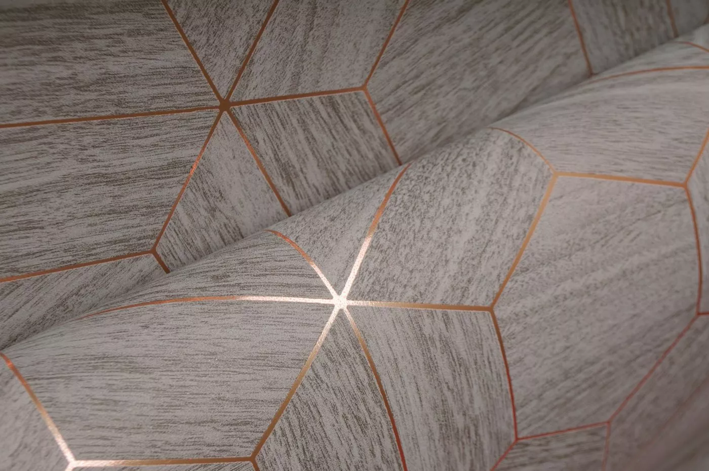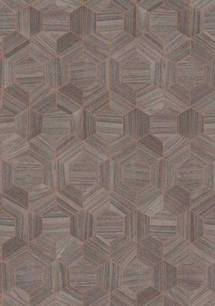 Hive besteht aus Intarsien mit Holzstruktur auf einen Untergrund aus glänzender Folie. Die Folie tritt in feinen Linien zwischen den Intarsien hervor, so dass eine hexagonale Form entsteht. In einigen Farbkombinationen hat das Dessin eine grelle Farbe, andere Farbtöne haben einen zarten silbrigen Glanz.