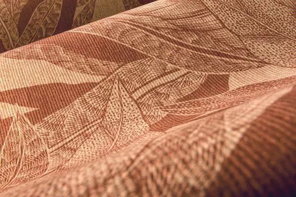 Umschreibung: Luxuriöser Samtstoff mit einem Muster von tropischen Blättern