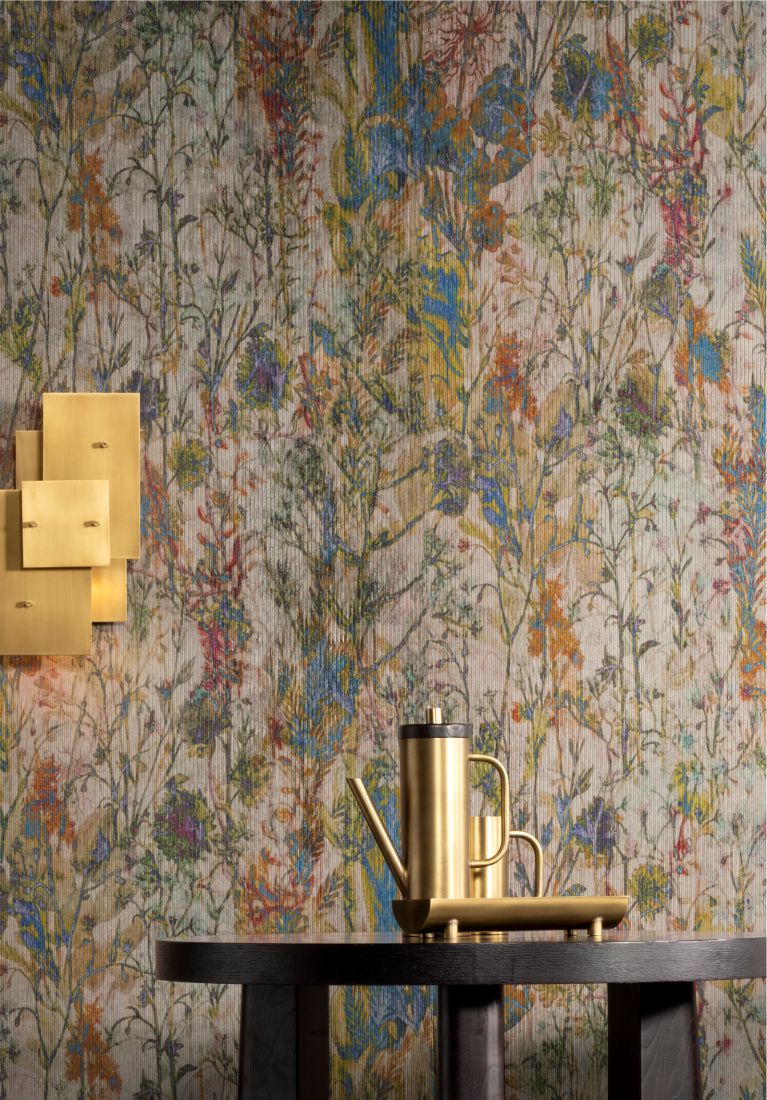 WildflowerDieses botanische Muster stellt einen bunten Wildblumenstrauß dar. Das markante Muster hat einerseits eine sehr luxuriöse Ausstrahlung und andererseits einen spontanen und verspielten Charakter. Wildflower zeichnet sich durch die expressive Kombination aus Farben, weichem Cordsamt und einem ungezwungenen Muster aus.