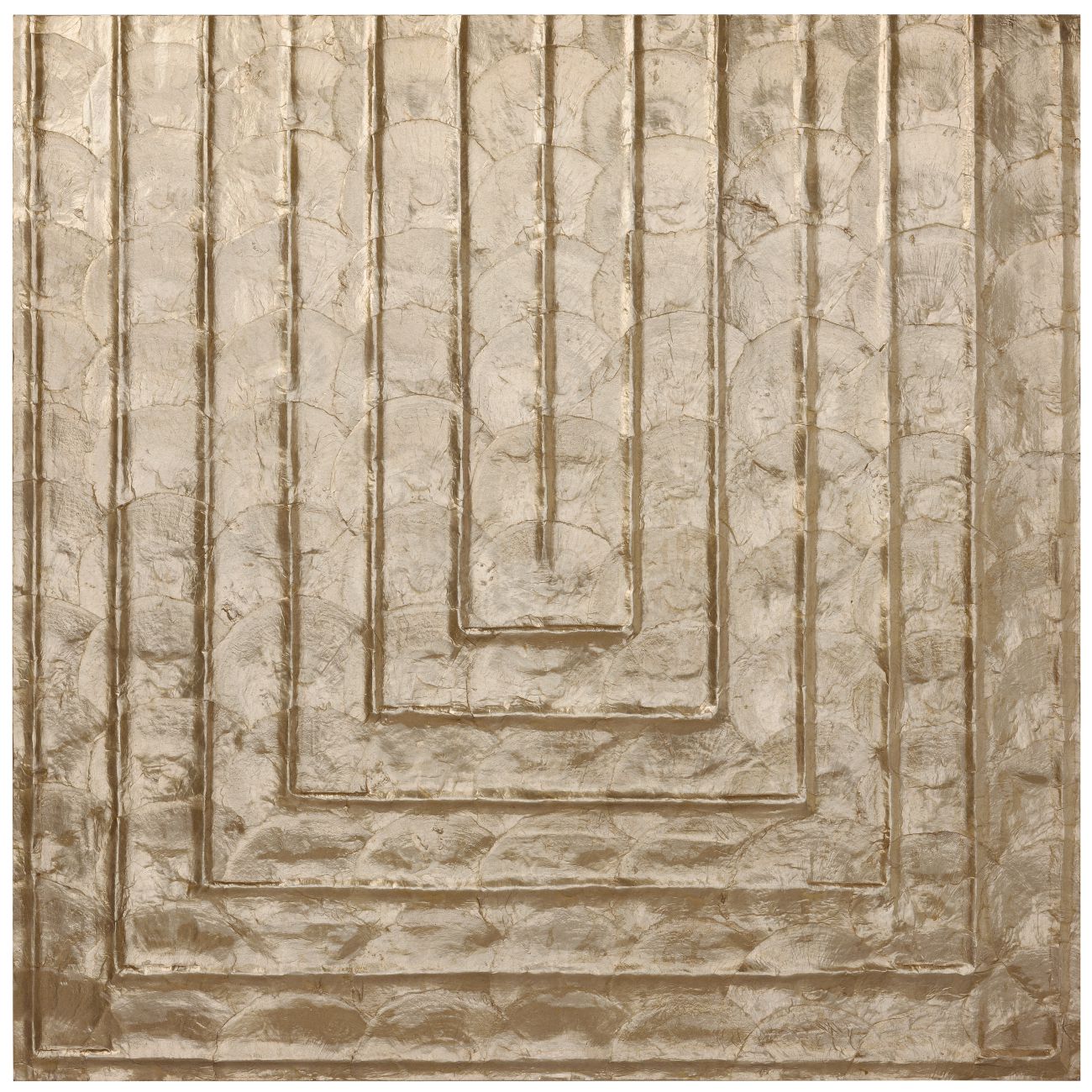 Umschreibung: Manuell eingearbeitete Capiz-Muscheln, die durch viel Relief und einen edlen Perlmutt-Schimmer beeindrucken