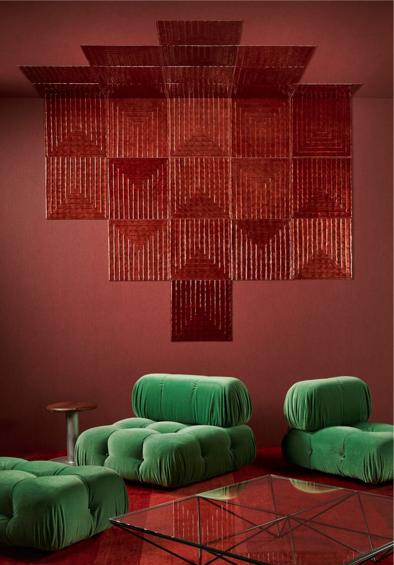 Cornice ist eine auffällige Wandbekleidung. Sie beeindruckt nicht nur durch die handgefertigte Verarbeitung aus Capiz-Muscheln, sondern auch durch die Möglichkeit, unterschiedliche Wandmuster zu kreieren, indem man die Fliesen in verschiedene Richtungen verlegt.