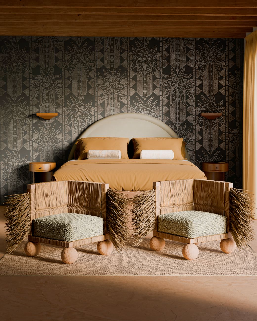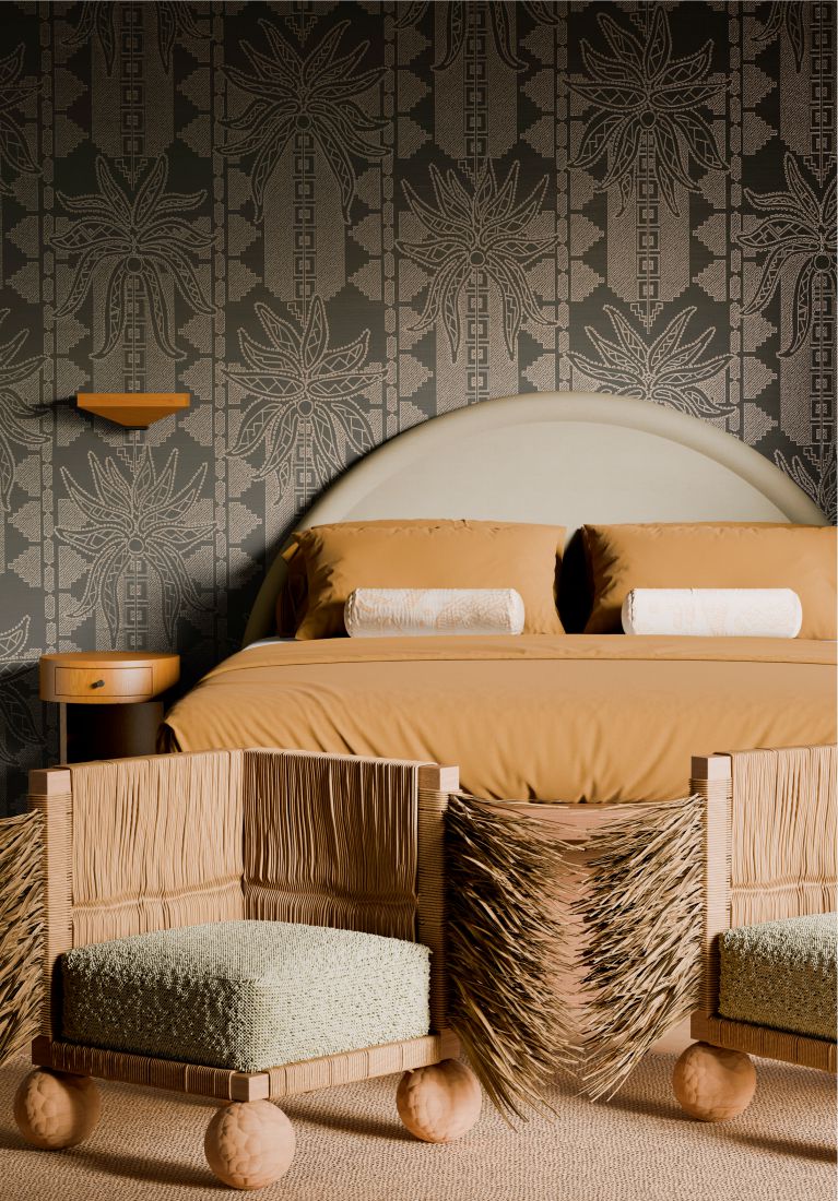 Die Marquesas-Inseln bieten dramatische Klippen, unberührte Strände und majestätische Palmen. In Verbindung mit der beeindruckenden kunsthistorischen Vergangenheit bildete der polynesische Archipel die perfekte Inspirationsquelle für die Marquesa-Kollektion. Diese exklusive Wandbekleidung verkörpert nicht nur die natürliche Schönheit der Inseln, sondern würdigt auch ihr reiches kulturelles Erbe. Einflüsse einheimischer Kunst sowie die Tradition jahrhundertealter Handwerkskunst sind in der gesamten Kollektion spürbar.Fenua