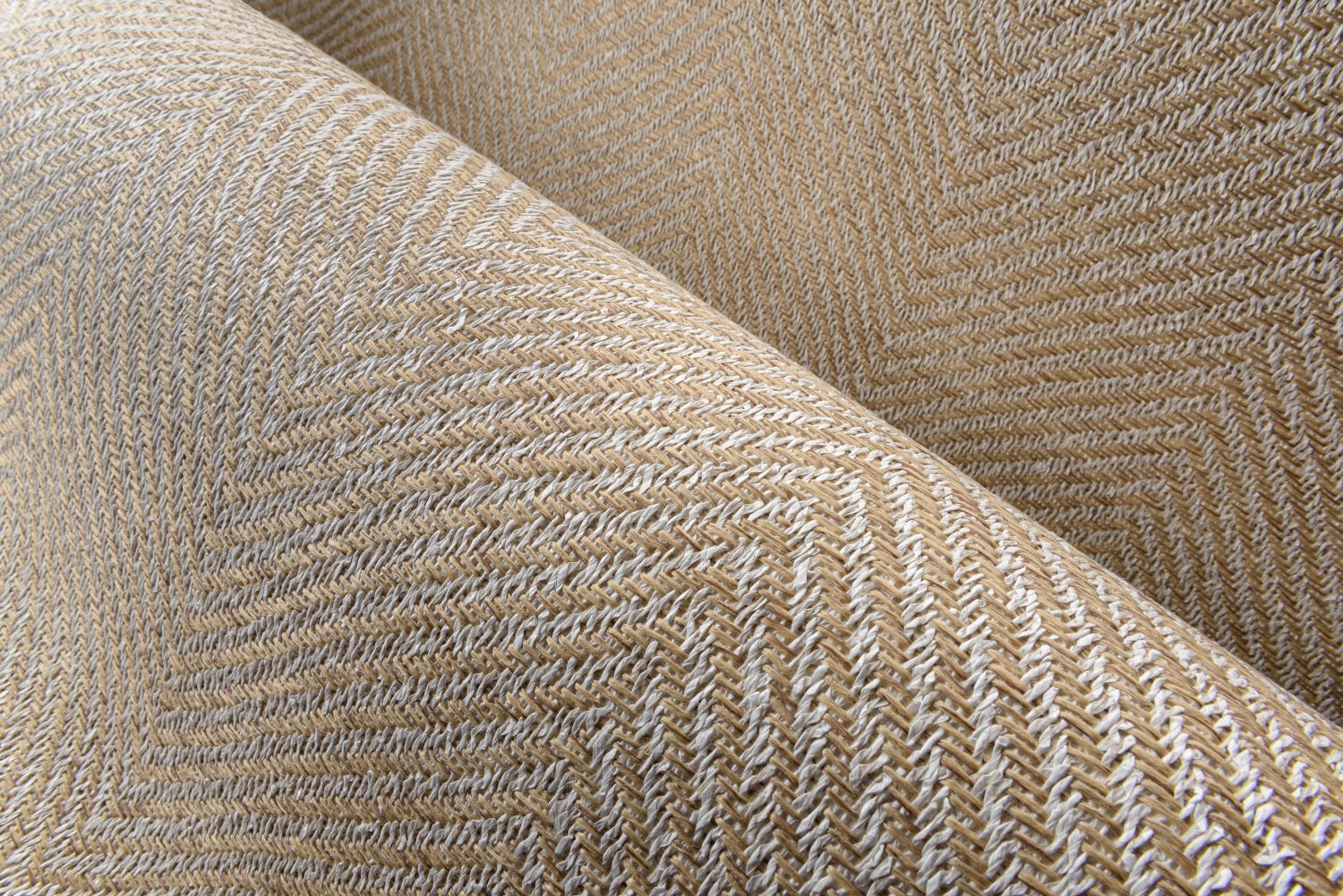 Umschreibung: Das Chevron-Muster vereint den natürlichen Charme von Papier und Jute zu einem edlen Gewebe