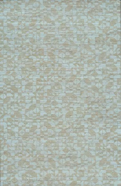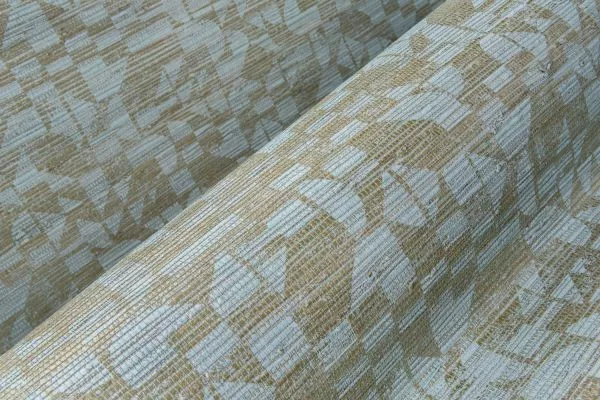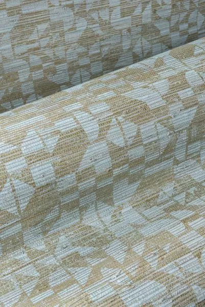 Dieses Design präsentiert ein geometrisches Muster, das präzise auf natürlichem Gras gedruckt ist. Eine metallfarbene Folie als Finish verleiht zusätzlichen Luxus und Glanz. Das Design trägt den Namen des Cyperus marquisensis, einer auf den Marquesas-Inseln heimischen Grasart, die dieser Kreation einen anspruchsvollen und exotischen Charakter verleiht.