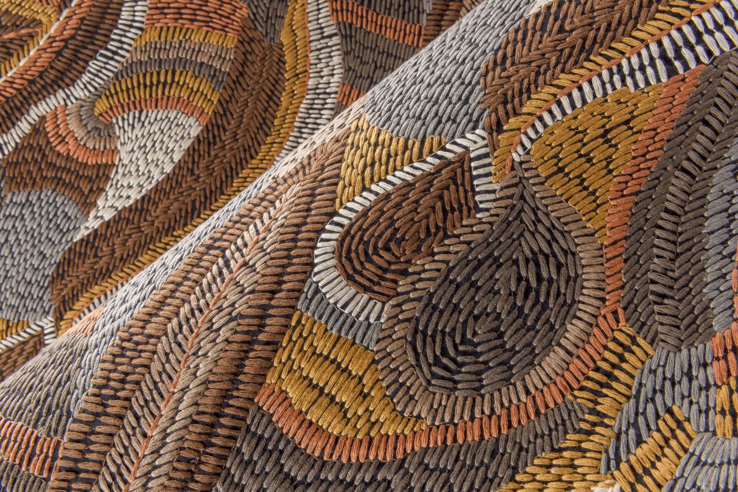 Mandrava ist ein brillantes Stück Handwerkskunst. Der Stoff ist dicht mit einem bezaubernden Blumenmuster bestickt. Dieses Kunstwerk erhielt den Namen Mandrava, benannt nach dem madagassischen Wort für Blätter.